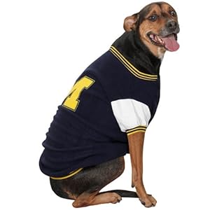 Product Description : Size: MediumKeep your favorite four-legged fan warm with a Varsity Jacket from your favorite team. Made of fleece. Faux leather sleeves and pockets. Team name across back.